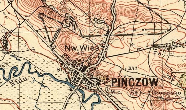 W kontekście ostatniej notatki zamieszczam też przedwojenny plan (fragment mapy WIG) „serpentin pińczowskich” i zdjęcie ich śladów w terenie (AD 2009):