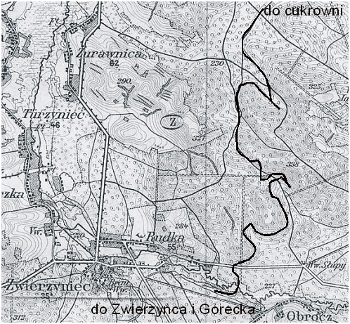 Kolej Zwierzyniecka miała bogatą historię: kolejka podjazdowa Ordynacji Zamojskiej (750mm), rosyjska kolej wojskowa w czasie I wojny światowej (750mm), austriacka Stabile Förderbahn (600mm), wreszcie kolej PKP (600mm, od 1964r. – 750 mm). Po jej likwidacji zbudowano linię normalnotorową a następnie dodano tor szeroki (LHS). W Zwierzyńcu, na tzw. Białym Słupie Austriacy zbudowali stację i zaplecze. Co ciekawe do obracania taboru zbudowano tu pętlę, nie trójkąt. Wewnątrz pętli znalazło się też miejsce na parowozownię i kilka krótkich torów odstawczych (rys. M.Kucharski):