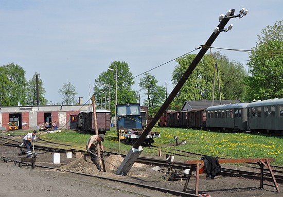 W dniach 1-3 maja 2012 udało nam się ustawić nowe latarnie. Przed nami jeszcze remont peronu. Zachęcamy do obejrzenia poniższej relacji ze stawiania latarń. Najpierw konieczne było wykopanie głębokich dołów i ułożenie w ich pobliżu betonowych, ważących ponad 200 kg szczudeł.