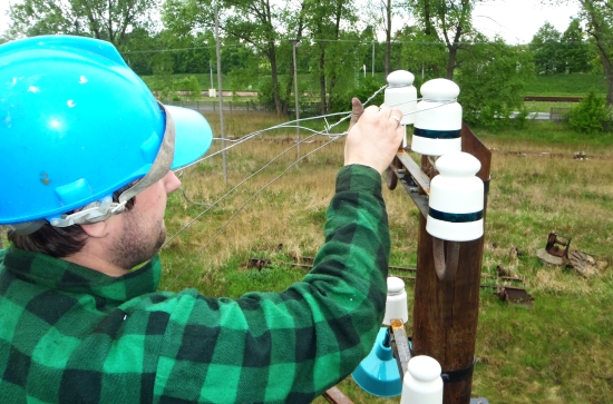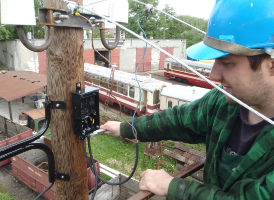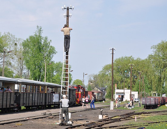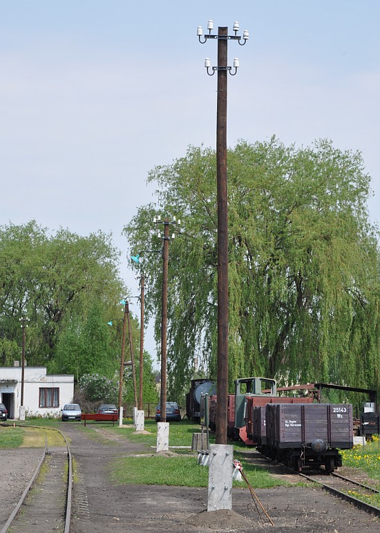 Przewody były montowane specjalnymi wiązaniami wg wytycznych ze starych książek o liniach teletechnicznych. Na słupach znajdują się trzy pary przewodów. Na dolnym poprzeczniku jest linia niskiego napięcia zasilająca latarnie, na górnym linia telefoniczna zapowiadawcza (izolatory z paskiem wg standardów przedwojennych) oraz linia sieci zegarowej. W przyszłości chcemy wydłużyć linię teletechniczną do przystanku Rogów Osobowy Wąsk.