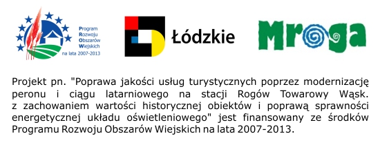 a jego realizacja została częściowo sfinansowana ze środków UE w ramach realizacji projektu pn. „Poprawa jakości usług turystycznych poprzez modernizację peronu i ciągu latarniowego na stacji Rogów Towarowy Wąsk. z zachowaniem wartości historycznej obiektów i poprawą sprawności układu oświetleniowego” realizowanego ze środków przyznanych z Programu Rozwoju Obszarów Wiejskich Województwa Łódzkiego na lata 2007-2013.